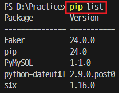 \pip list를 사용해 보면 어떤 패키지가 설치되어 있는지 볼 수 있으므로 설치 전후에 패키지가 있는지 확인해 불 수 있다.