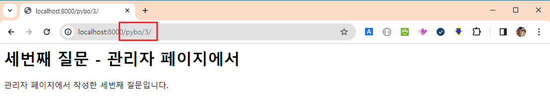 'detail'은 별칭이다. 이 detail은 방금 위에서 설정한 형식을 가진다. detail에서 설정한 형식은 pybo/숫자가 나오는 형식인데 이때 받는 숫자는 question_id가 된다.