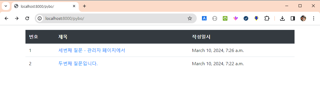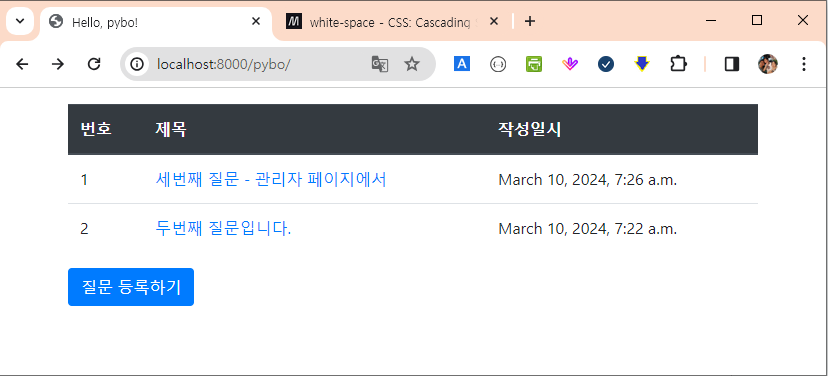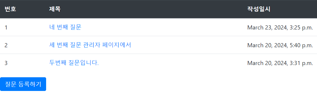 1) 질문 목록 템플릿(question_list.html)에 부트스트랩 스타일 적용