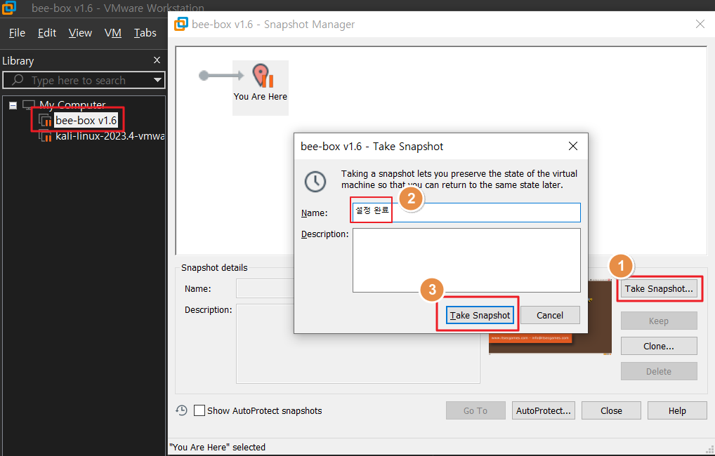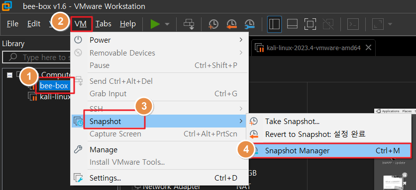 Kali도 같은 방법으로 스냅샷을 설정한다.