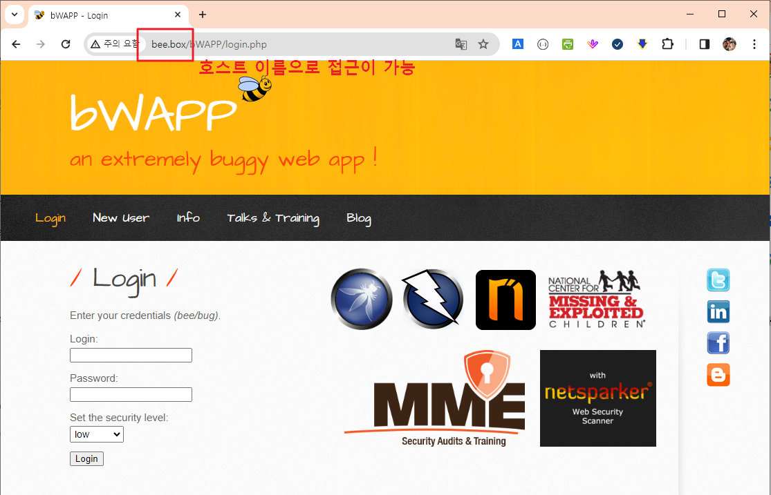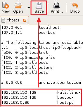 Bee-box cmd에서 sudo gedit /etc/hosts를 입력하면 비밀번호를 입력해야 하는데 bug를 입력하면 된다.