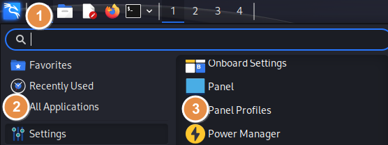 Kali에서 시작메뉴를 누르고 Settings에서 Power Manager로 들어간다.