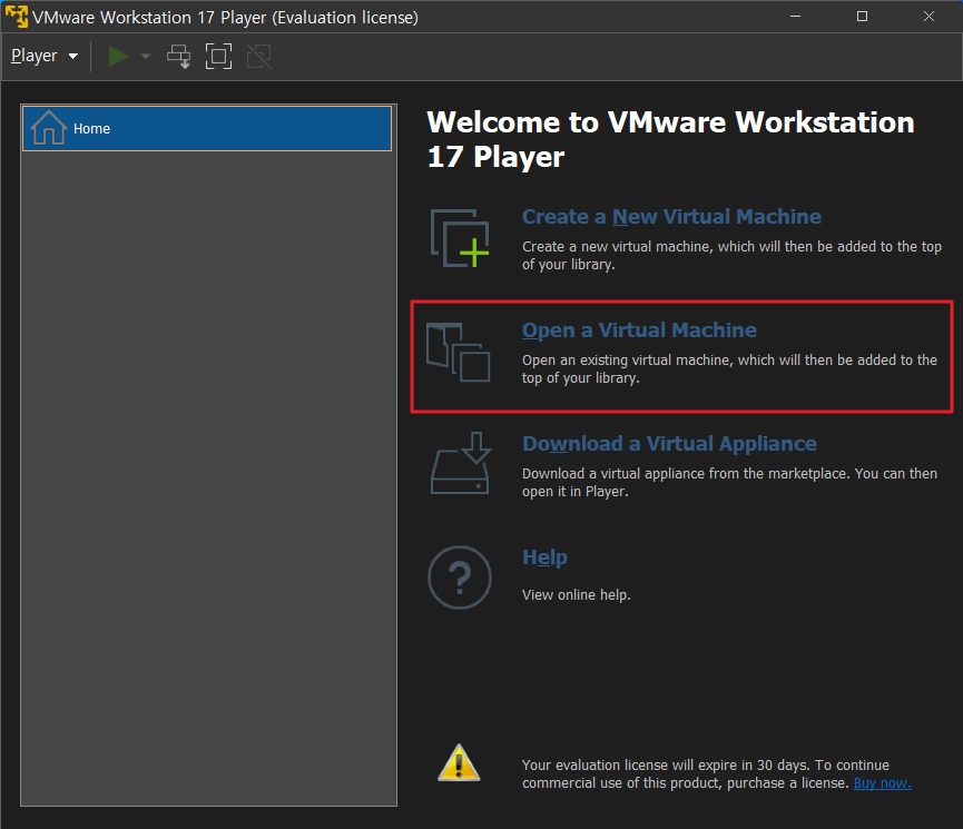위 링크는 VMware workstation Pro의 링크다. workstation Pro는 무료 30일 라이선스만 지원하고 시리얼 키를 구매해야 정상적인 사용이 가능하다. 무료 30일 라이선스가 만료되어도 가상머신의 전원만 못 켤 뿐 생성 및 기타 작업이 가능하다.