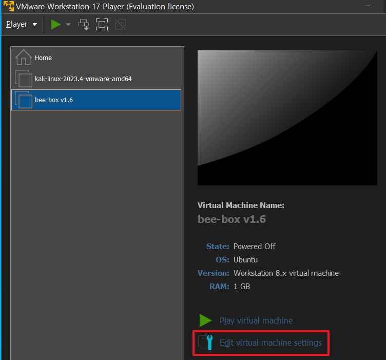 압축 해제한 kali와 Bee-box를 open 메뉴를 이용해 추가 해준다.