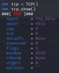 tcp = TCP(sport=RandNum(1024, 65535), dport=80, flags='S')