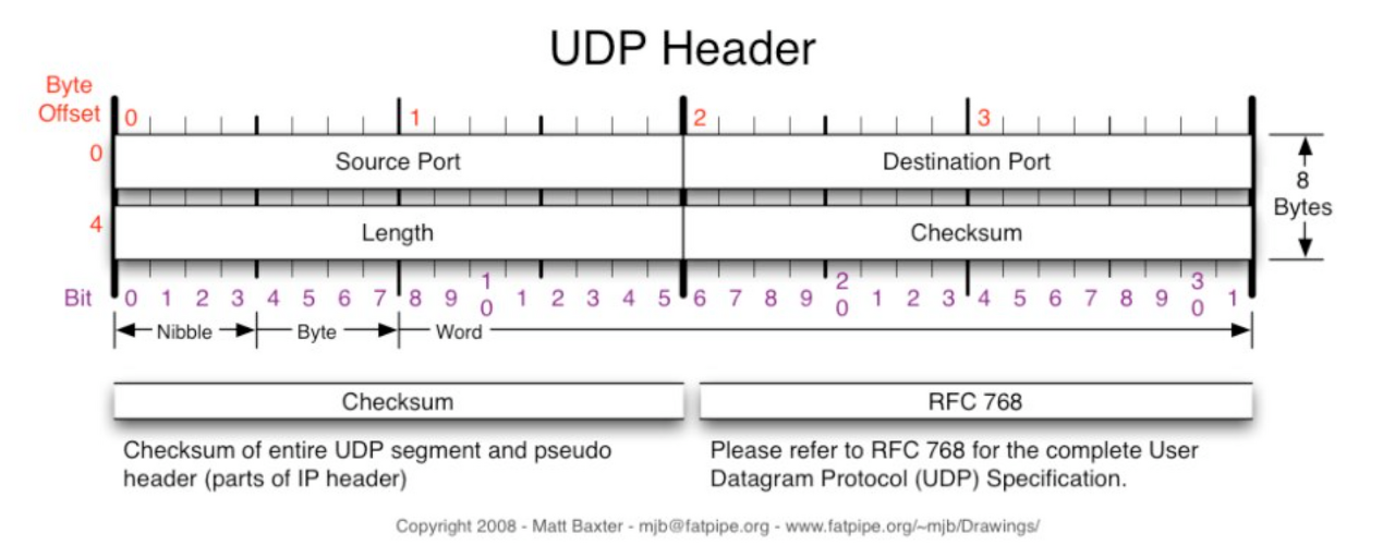 - 길이 : UDP 페이로드와 UDP 헤더를 더한 데이터 그램의 크기