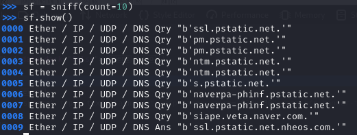 - 스니핑 결과를 요약 출력