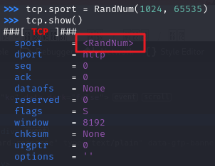 # tcp.sport = RnadNum(1024, 65535)
