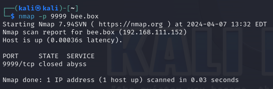 9999/tcp 포트로 서비스 하지 않는 것을 볼 수 있다.
