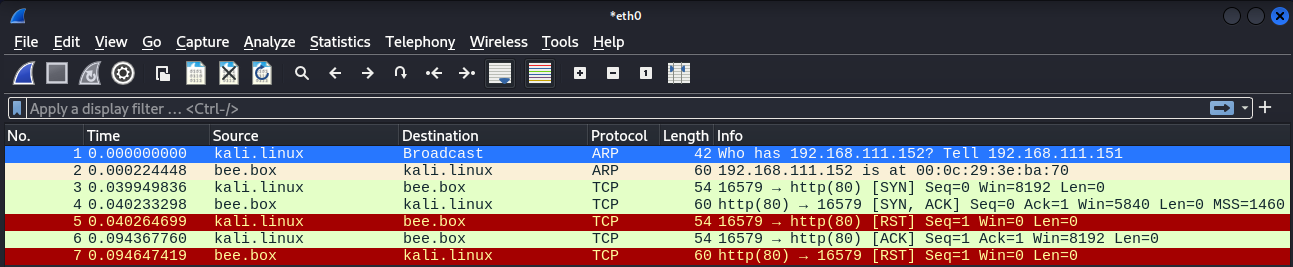 kali 가상머신에서 Bee.box 가상머신으로 연결(3-way handshaking) 하는 것을 구현