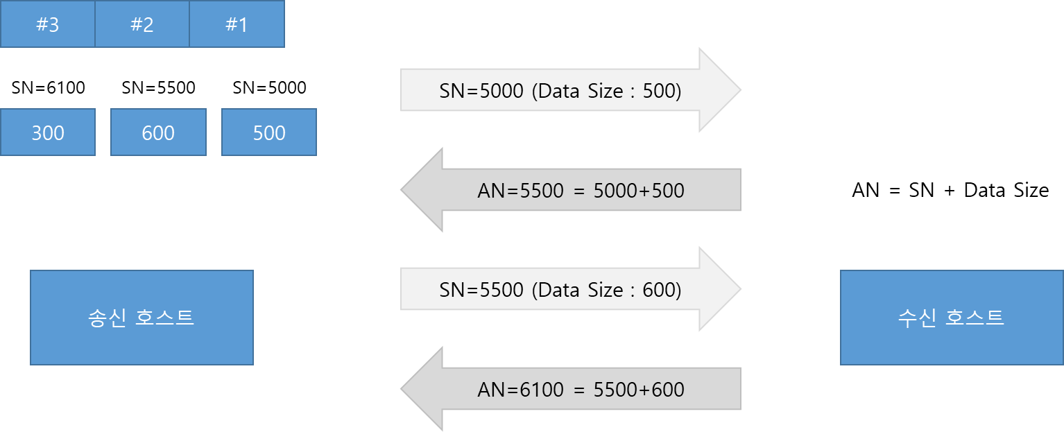 SN과 Data Size를 전송하면 AN을 돌려주는데 AN은 SN + Data Size이다.