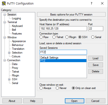 서버 아이피를 알았다면 PuTTY를 설치해 FTZ에 접속해야 한다.