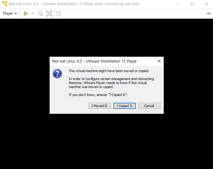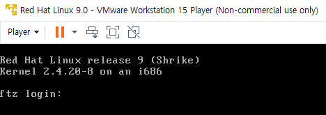 Vmware_Redhat_9_FTZ.zip 압축파일을 풀고 사진에 선택된 Red Hat Linux.vmx을 실행시키면 Vmware가 실행된다.