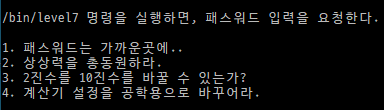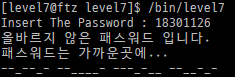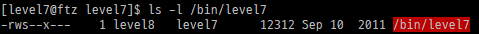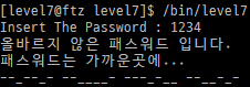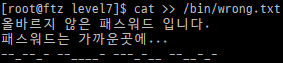 bin 디렉터리에는 level7 계정으로는 파일을 만들 수 없으므로 root 계정에 로그인해야 한다.