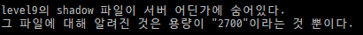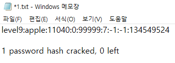 일단 해커스쿨에서 찾은 found.txt에서 나오는 level9의 shadow 파일 내용을 복사한다.