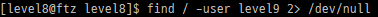 아주 간단한 find / -user level9로 찾아보았지만 찾은 결과가 없다.