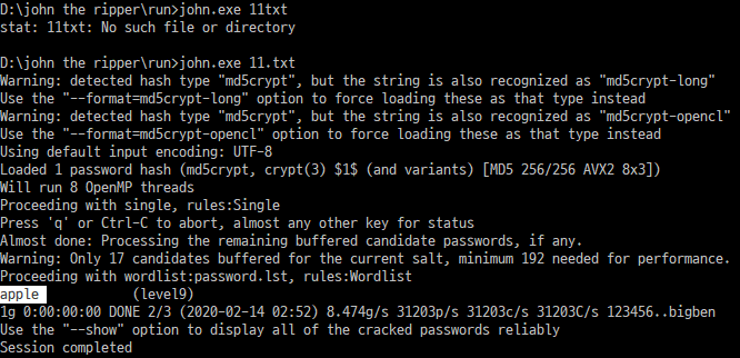 John the Ripper를 사용하기 위해서는 윈도우 cmd와 해독할 파일이 있어야 한다.