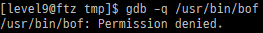 bof의 권한이 level 9에서는 실행 권한만 있다. gdb로 분석하려고 해도 권한 오류가 난다.