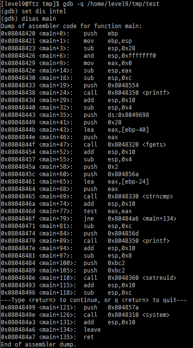 level 9에는 새로운 것들이 많이 나오고 이후부터는 GDB로 분석을 해야 한다.