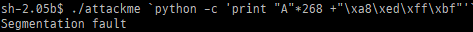 eggshell 주소로 attackme에 BOF를 하면 오류가 난다.