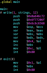 이제는 위 helloworld 실습에서 했던 것처럼 에셈블리로 코드를 작성해야 한다.