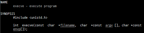 execve() 함수는 세 개의 인자들이 모두 "const char *"형 인자들을 요구하고 있다.