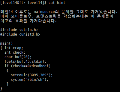 level 14 로그인 후 hint를 본다.
