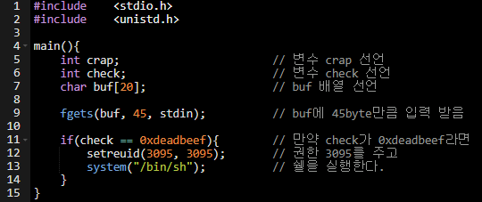 | 56byte 확보 | buf | check | crap | dummy | |