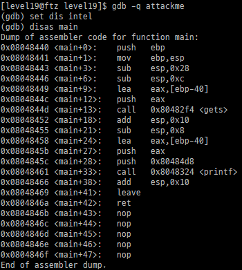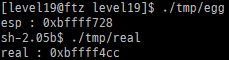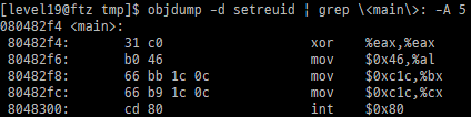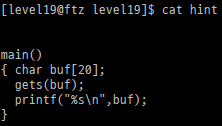 level 19 hint와 같이 글로 준 hint를 합쳐 생각하면 setreuid를 실행하는 쉘코드를 만들어 이전 쉘코드와 함께 사용하면 된다.