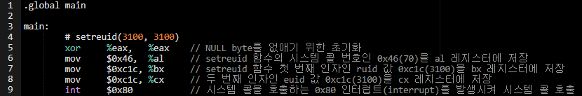 사용자 ID를 바꾸는 setreuid 함수의 인자로는 사용자 ID에 해당하는 uid이다. 쉘코드를 만들기 위해서는 얻고 싶은 ID의 uid를 알아야 한다.