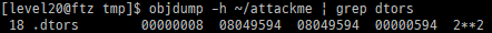 이렇게 되면 ret의 주솟값을 찾기가 힘들다. 이럴때는 .dtors를 쓴다.
