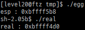 .dtors 주소인 08049598에 "f4d0" 2byte를 넣고 .dtros 주소보다 2byte 큰 주소인 0804959a에 "bfff" 2byte를 넣어주면 된다.