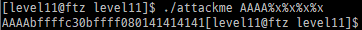 level 20과 같이 level 11에서도 printf 함수에서 포맷 스트링을 사용하지 않았기 때문에 여기서 FSB가 일어나게 된다.