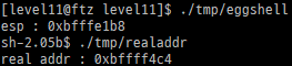 쉘코드 주소인 bffff4c4를 10진수로 바꾸게 되면 3,221,222,596이 된다. int형을 벗어난 숫자고 이처럼 큰 숫자는 32bit PC에서는 입력할 수 없다. 따라서 하위 주소, 상위 주소를 나눠서 사용한다.
