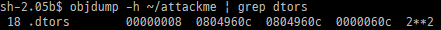 포맷 스트링을 몇 번 써야 읽히는지 알았다면 이제 쉘코드 주소와 .dtors의 주소를 알아야 한다.