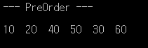 puts(" --- PreOrder ---"); puts("");