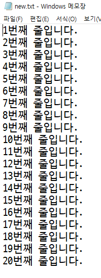 - for 문을 사용하여 파일을 줄 단위로 읽을 수 있다.