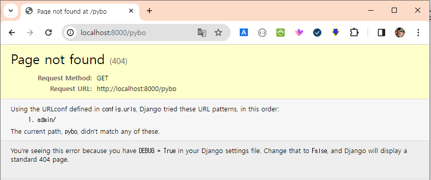 - path('pybo/', include('pybo.urls'))로 수정