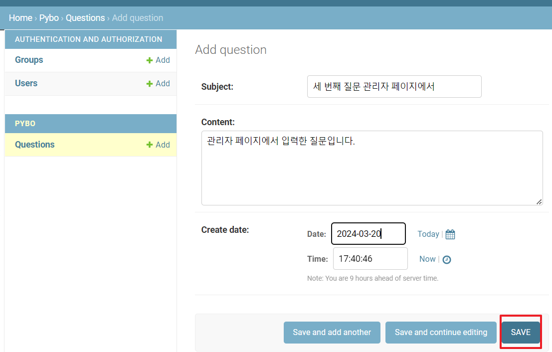 3) Question, Answer 모델을 admin 페이지에 등록