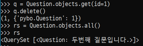 - Question.objects.get(id=1)