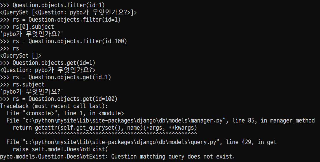 - Question.objects.filter(id=1)