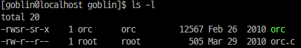 이때 orc 실행파일을 gdb로 열면 gdb 실행 명령어인 "r"이 권한제한으로 오류를 내므로 goblin 권한으로 orc를 복사해 gdb로 열면 권한제한 문제는 없어진다.